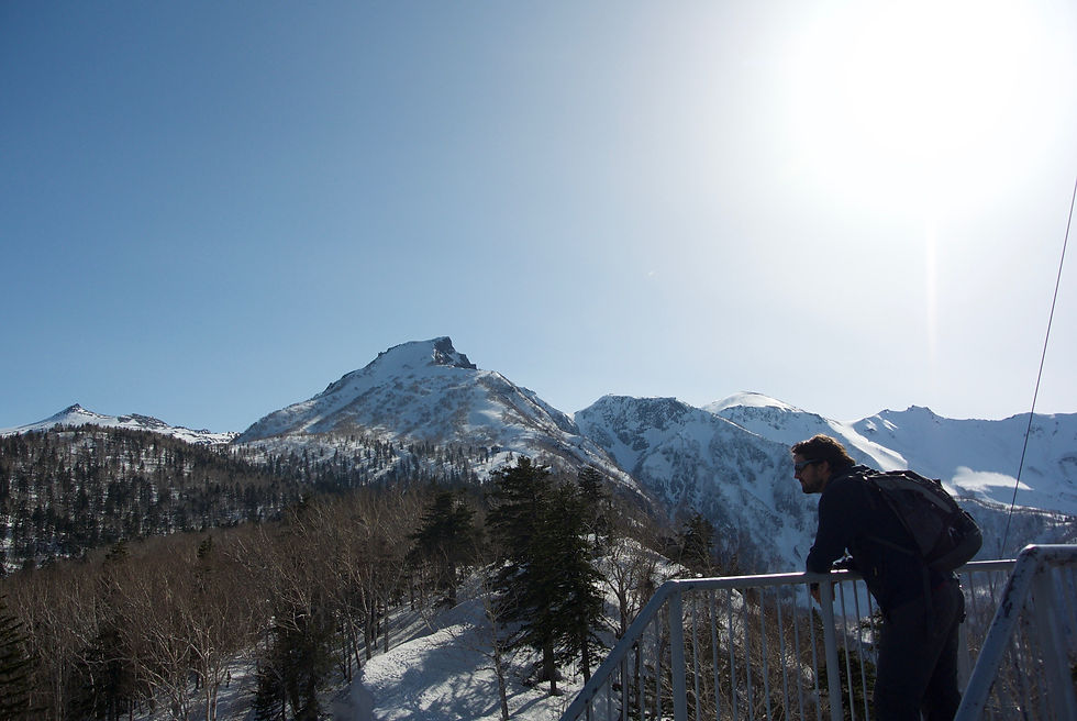 C’est « la » station de ski du Nord Daisetsuzan et la porte d’entrée pour aller dans le parc. Via internet, cela semblait réellement magnifique ce coin : randos, vues panoramique sur les montagnes avoisinantes, forêts… Nous devions avoir tout ce que nous voulions ici mais c’était sans compter sur un élément que nous adorons mais qui là nous a pas mal bloqué… la neige ! Le lendemain de notre arrivée à Sounkyo, nous sommes allés voir à l’office du tourisme comment accéder au sommet du coin par les chemins de rando. Bilan des courses : ce n’est pas la saison des randos car il y a de la neige ! (On le savait mais on espérait que cela soit suffisamment fondu et que ce serait de la surprotection pour touriste).