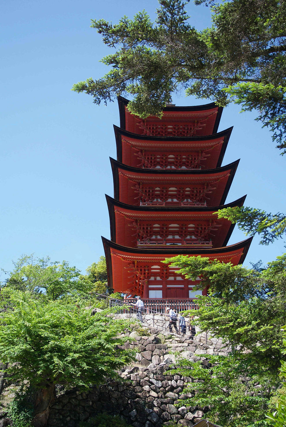 Nous utilisons ce nom mais en fait il ne devrait plus exister. Il s’agit du nom populaire donné à cette île que nous sommes partis visiter depuis Hiroshima. L’île s’appelle en fait Itsukushima. Le bourg de Miyajima qui existait bel et bien avant 2005 a été fusionné avec la ville plus importante Hatsukaichi. Il s’agit d’un village de pèlerinage avec à nouveau des temples à foison mais dont l’attraction principale reste le Tori « flottant ». Il s’agit du grand Torii du sanctuaire d’Itsukushima (le tout étant inscrit au patrimoine mondial de l’Unesco).